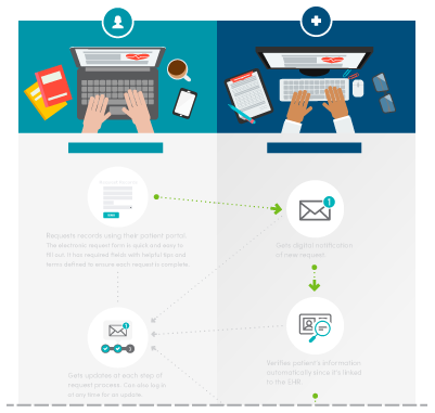 Allowing patients to submit a record request electronically is a great way to increase patient access. With both email and patient portal submission as options, patients can submit their request at a time that’s convenient for them — instead of having to locate a fax machine or hand-deliver a request form during office hours.